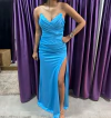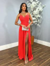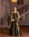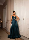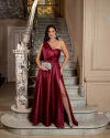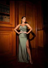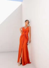Vestido Longo Luxo Acetinado com Fenda e Drapeado