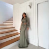 Vestido Longo Luxo Manga Longa com Drapeado e Lenço Malha Prada