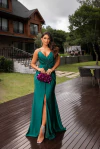 Vestido Longo Paetê Decote em V com Fenda Frontal