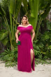 Vestido longo luxo microtule com decote ombro a ombro
