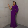 Vestido Longo Luxo Trilobal com Drapeado e Design Assimétrico